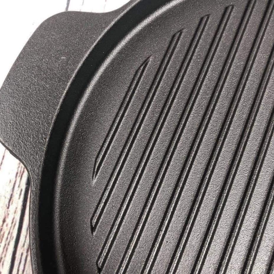 Chảo nướng bằng gang, dùng trên mọi loại bếp: bếp từ, hồng ngoại, gas, cồn, than củi, cho vào lò nướng dung tích lớn,...