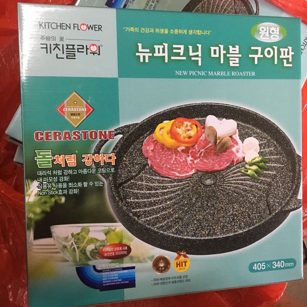 🔵 Vỉ nướng Hàn Quốc Kitchen Flower Cerastone 405x34mm:- Dùng để nướng thực phẩm tươi sống.