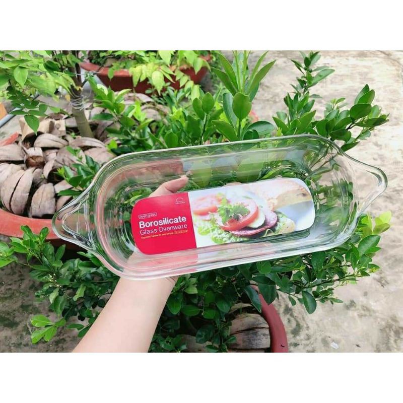 - Thiết kế trong suốt sang trọng, sử dụng đa năng tiện lợi (dùng trong lò nướng, và bày ra dùng trực tiếp trên bàn tiệc), có quai cầm.