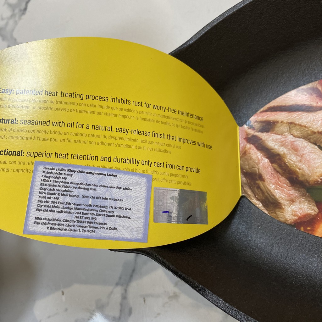 Lưu ý: Tôi dầu trước khi sử dụng lần đầu. Nên rửa khay với nước nóng & lau khô bề mặt chảo (mặt trong, ngoài, tay cầm) sau mỗi lần sử dụng.