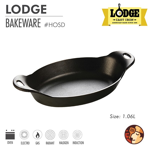 Khay gang Lodge hình Oval chuyên dùng cho các món nướng. Khay phù hợp cho các món khai vị nóng, lạnh, nước sốt và món tráng miệng nhờ khả năng giữ nhiệt tối ưu. Thiết kế hình Oval cùng hai tay cầm thuận tiện trong quá trình chế biến thức ăn, cầm nắm dễ dàng khi sử dụng cho lò nướng hoặc chế biến bằng bếp.Khay gang Lodge sử dụng được cho mọi loại bếp như bếp từ, bếp hồng ngoại, bếp gas, bếp củi,... và rất an toàn cho lò nướng vì vậy bạn có thể dùng kết hợp với lò nướng giúp món ăn đạt tới độ “ngon không tưởng”. Sản phẩm được sản xuất tại Mỹ 100%.