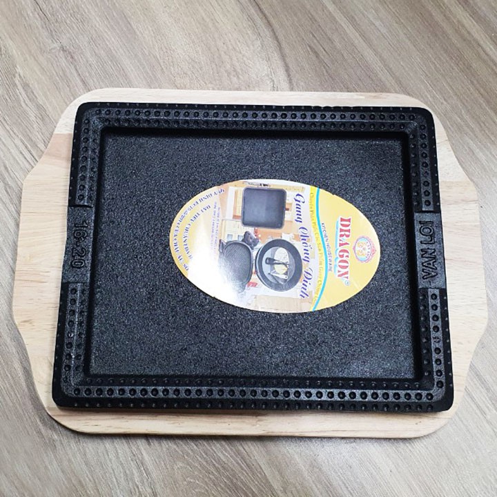 Khay nướng rán vuông bằng gang chống dính Dragon được sản xuất tại Việt Nam theo công nghệ chống dính của hãng Nipon Nhật Bản.