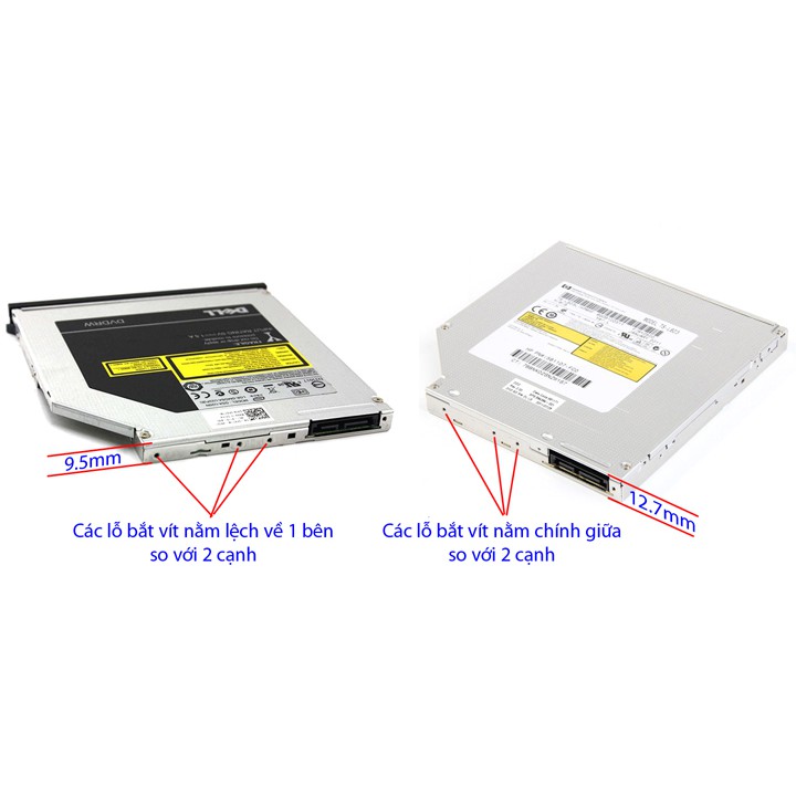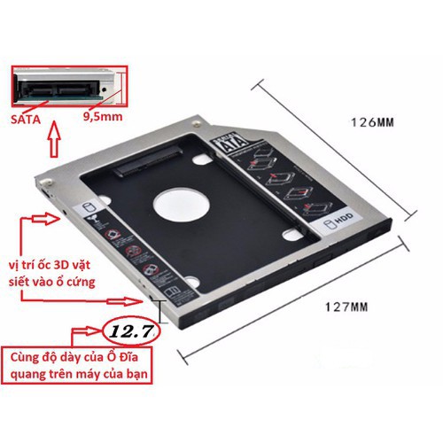 Khay gắn thêm ổ cứng vào khe CD độ dày 9.5mm và 12.7mm cho máy tính xách tay thuận tiện khi gắn thêm một SSD/HDD 2.5” cho máy tính xách tay.⛔ Caddy bay 12.7mm loại dày thường lắp cho các máy: