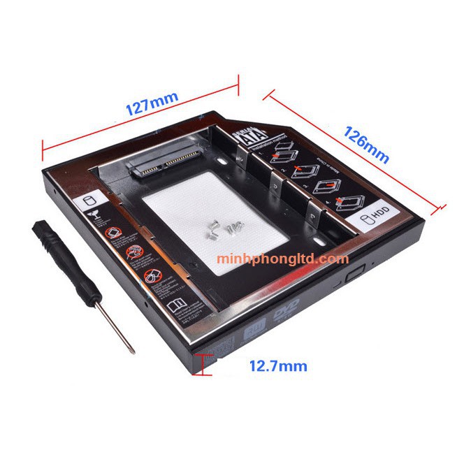 - Caddy Bay SATA 3.0 9.5mm hoặc 12.7mm gắn thêm ổ cứng HDD SSD cho Laptop