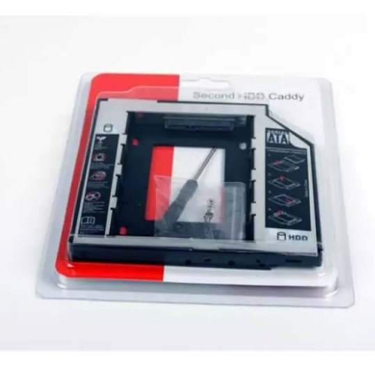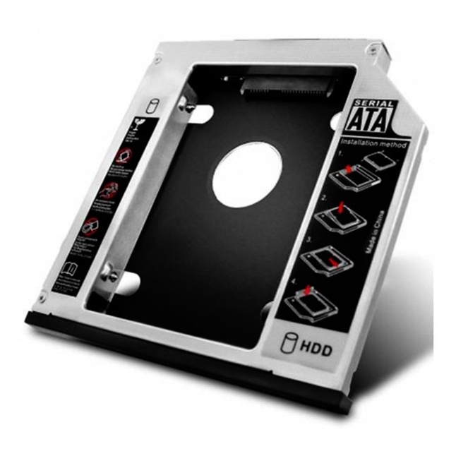 Caddy Bay là thiết bị dùng để gắn thêm ổ cứng HDD hoặc SSD thứ 2 cho những Laptop có sử dụng ổ đĩa DVD chuẩn SATA (Nếu Laptop của bạn không có ổ DVD thì bạn không thể sử dụng Caddy Bay). Bạn nên tìm hiểu ổ DVD trong Laptop của bạn đang chạy chuẩn gì và độ dày của ổ DVD.Caddy Bay Laptop thường có 2 loại: loại dày 12.7 mm và loại mỏng 9.5 mm.