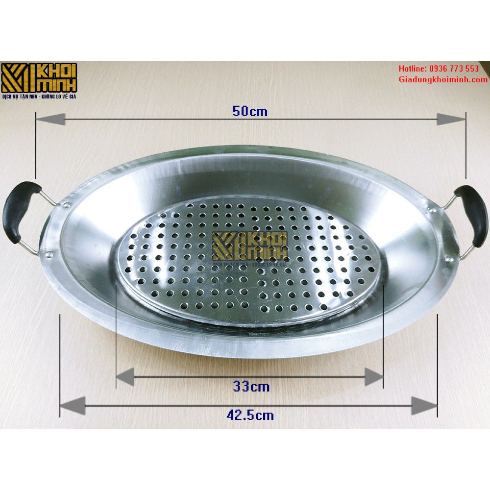 - Khay ăn lẩu, hấp cá, om rưa inox có vỉ hấp
