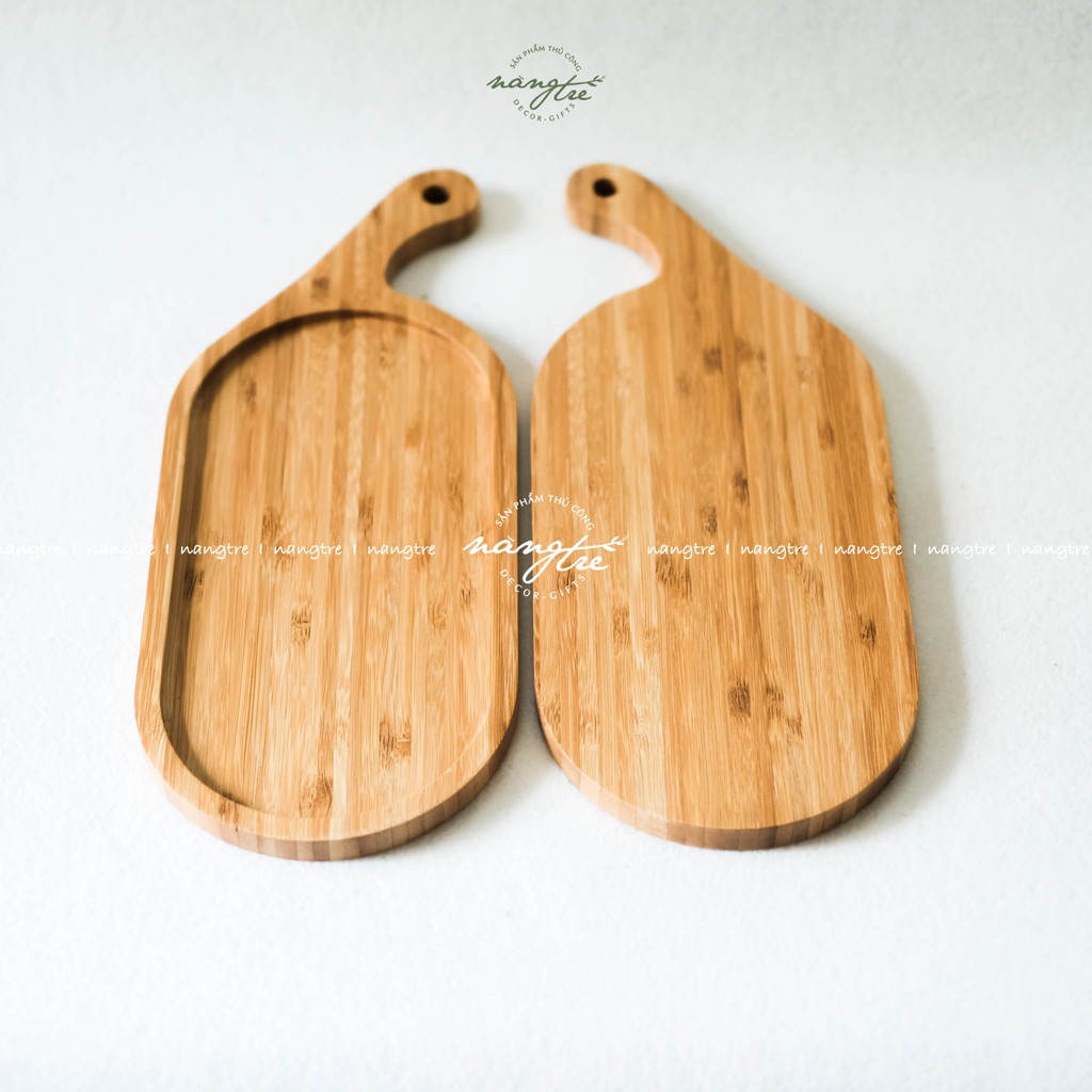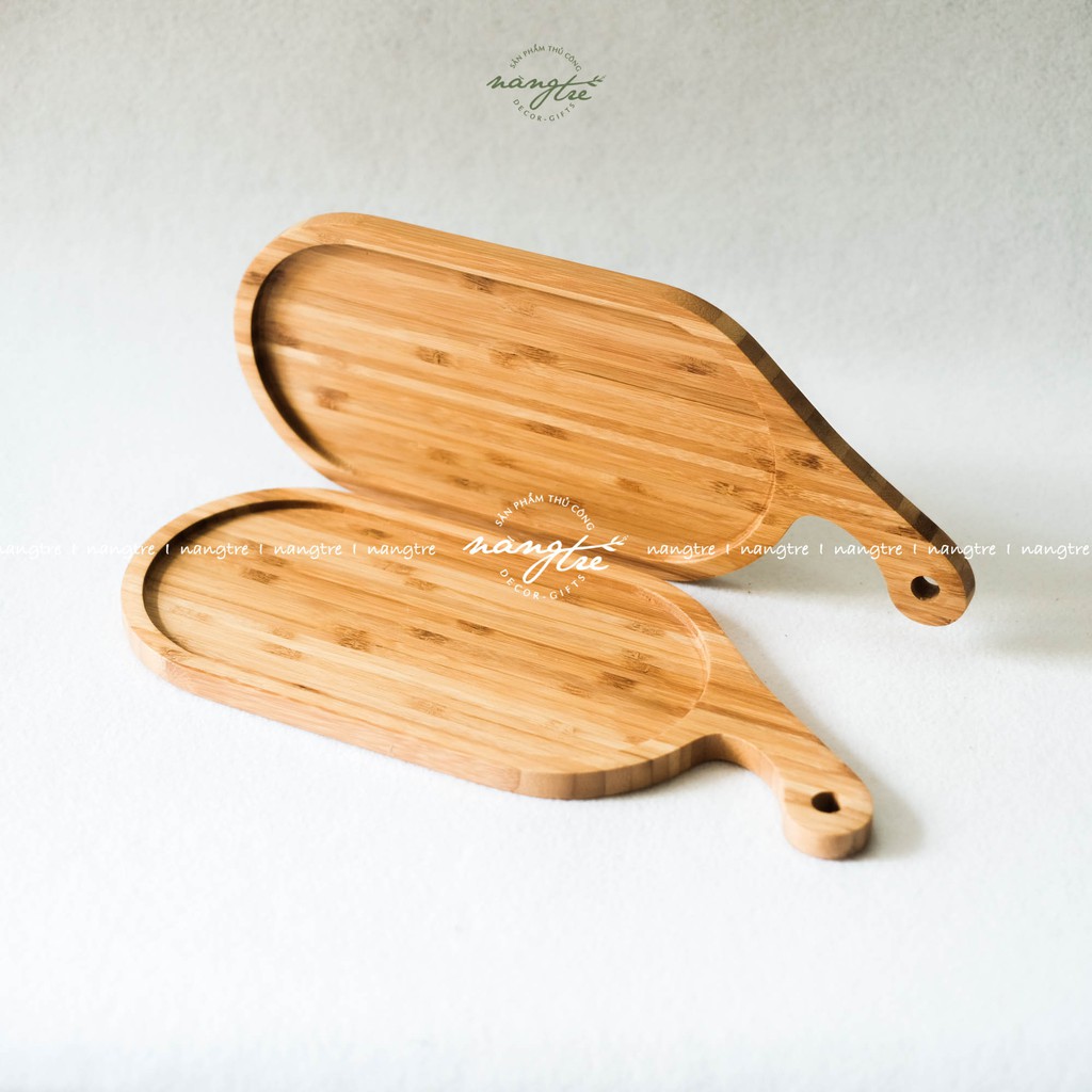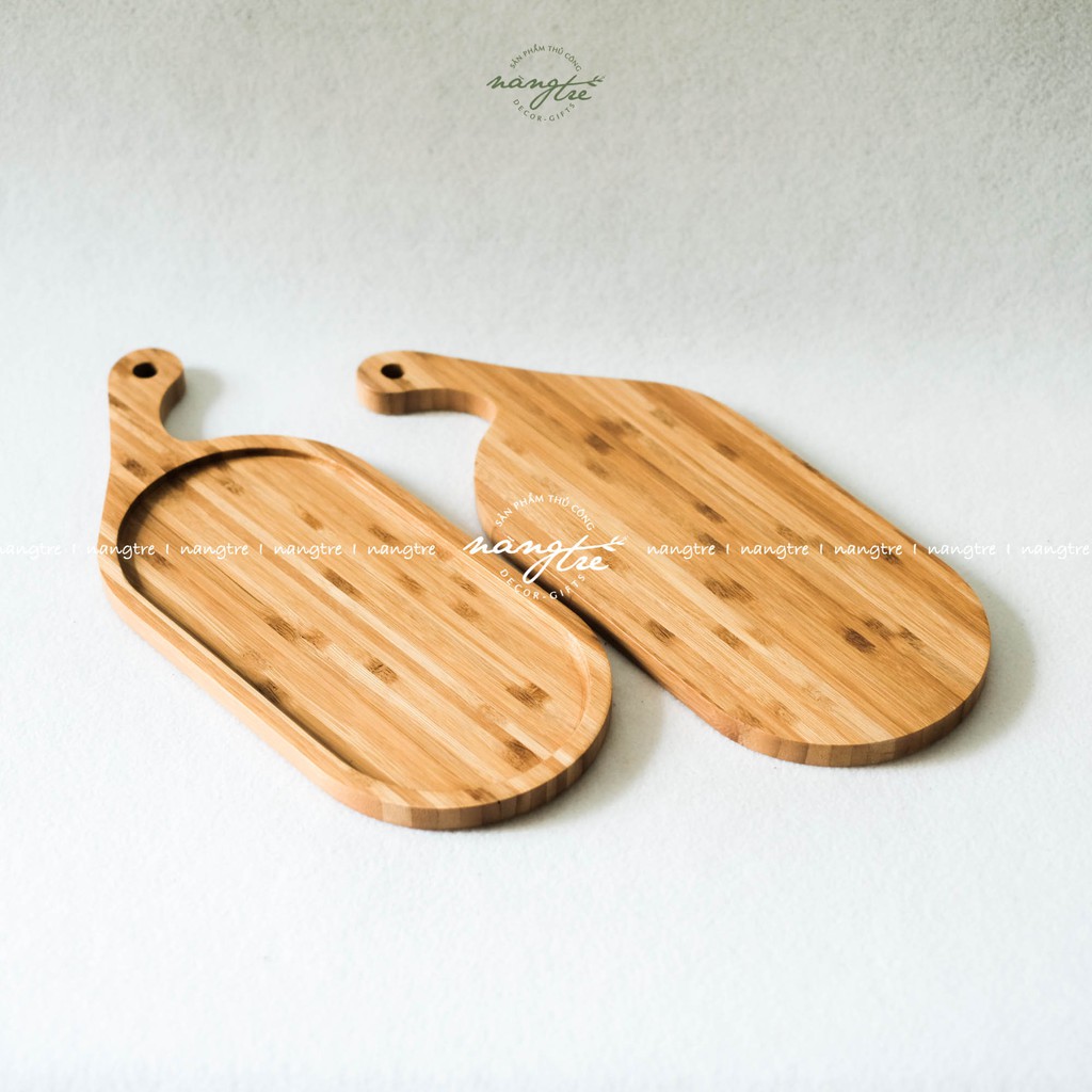 Nhà cửa & Đời sống > Dụng cụ nhà bếp > Thớt || Khay oval tay cầm gỗ tre, Khay gỗ tre trang tríCòn hàng