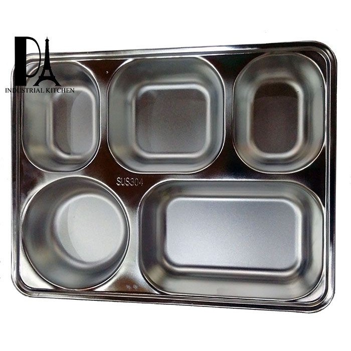 Khay phần bằng inox 5 ngăn sâu, khay phần đựng cơm đồ ăn cho công ty, xí nghiệp, văn phòng, quán ăn