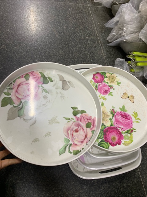 Giới thiệu Khay phíp tròn trắng hoa 3 cỡ hàng cao cấp