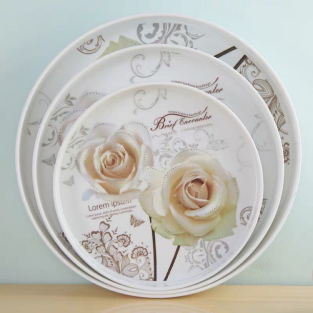 Nhà cửa & Đời sống > Bộ đồ bàn ăn > Dĩa || Khay phíp tròn trắng hoa 3 cỡ hàng cao cấpCòn hàng