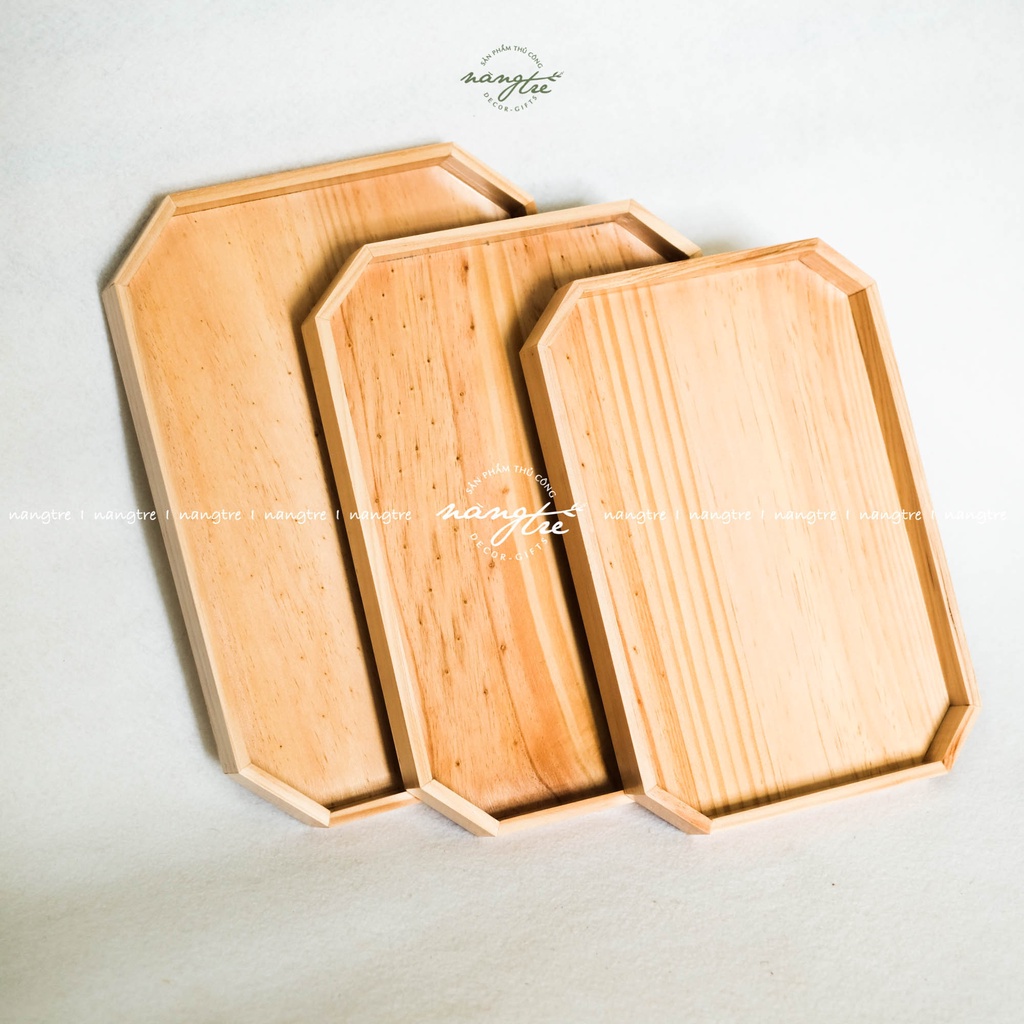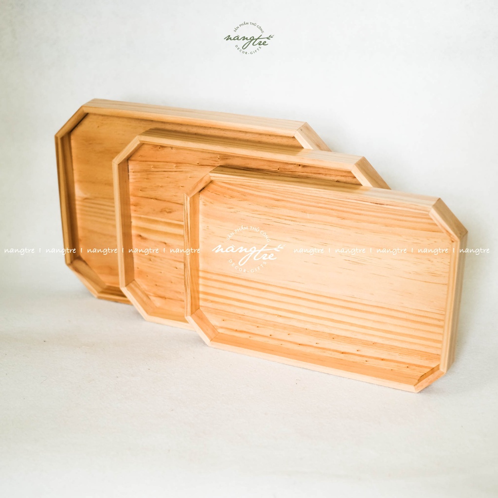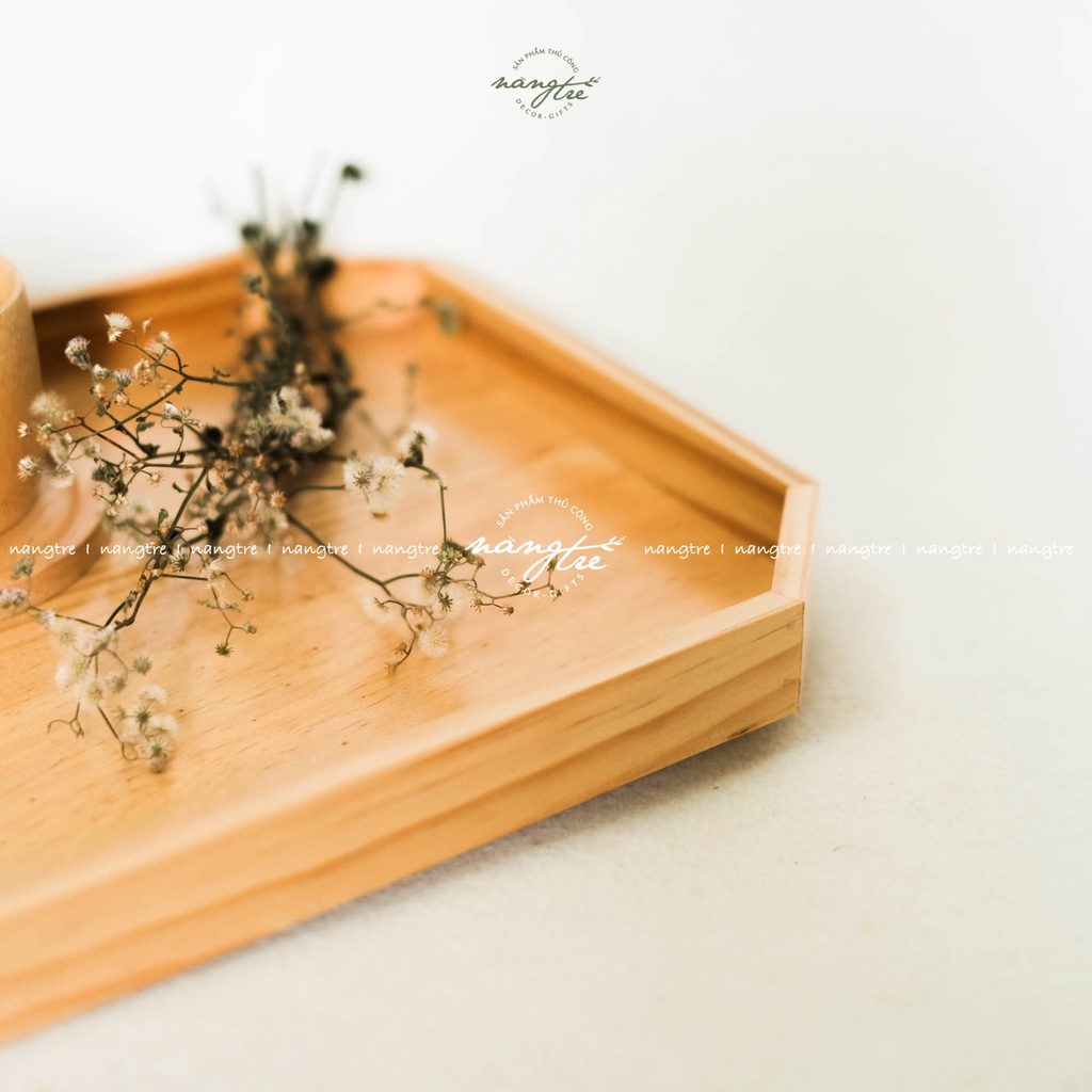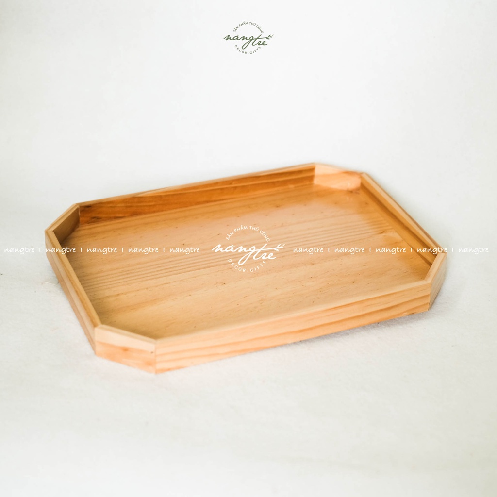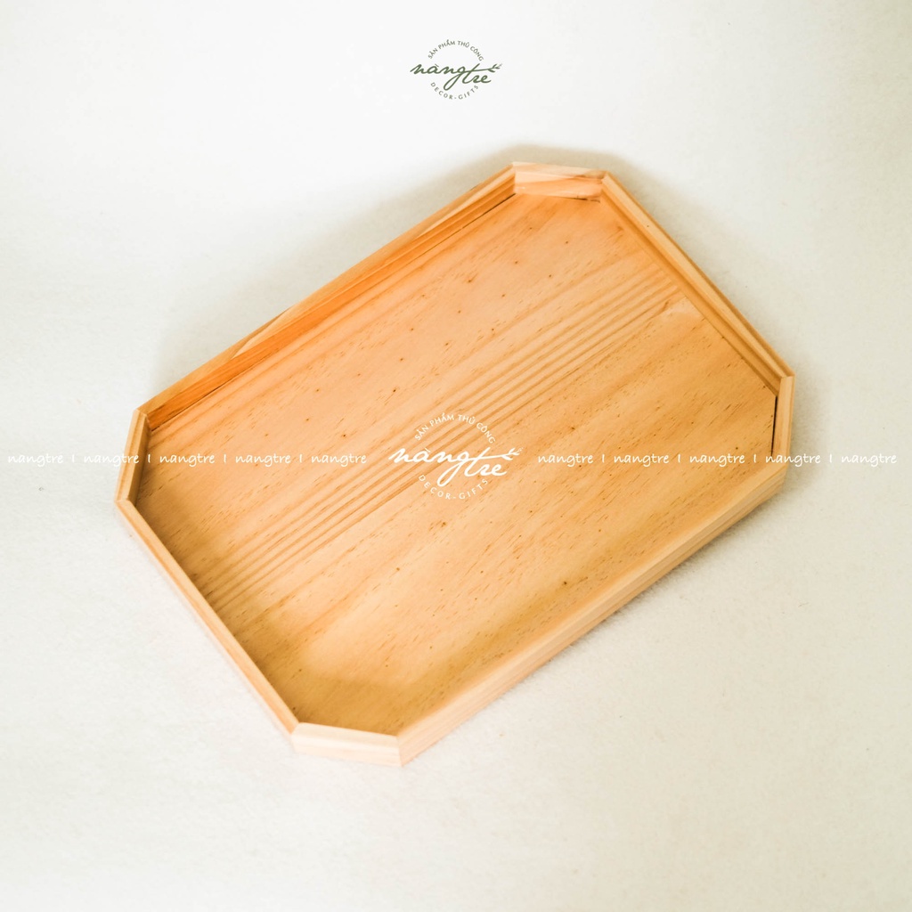 Khay phục vụ, Khay gỗ hình bát giác- Được sản xuất từ gỗ thông nhập tự nhiên,vân gỗ tự nhiên mộc mạc, chống nước, ẩm