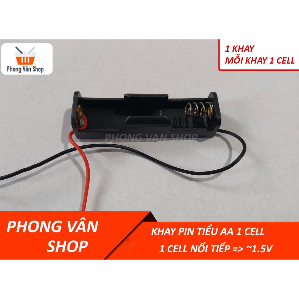 Khay pin tiểu AA nối tiếp- 1 cell - 1 khay -mỗi khay 1 cellLưu ý : Khay chỉ sử dụng pin tiểu AA có điện án ~1.5v. trên thị trường hay còn họi là pin tiểu loại lớn.