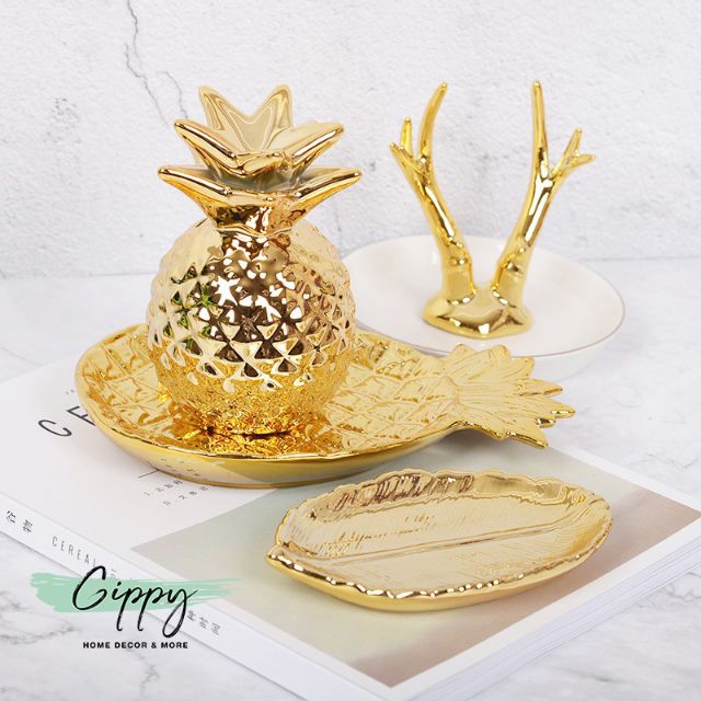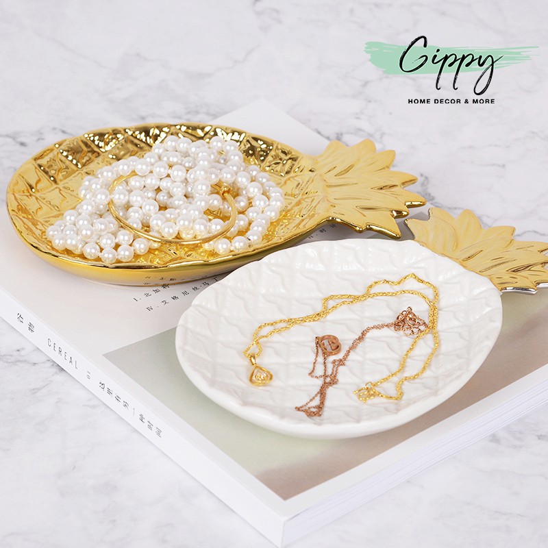 Nhà cửa & Đời sống > Bộ đồ bàn ăn > Dĩa || Khay quả dứa màu gold / trắng phong cách Bắc Âu/Nordic - Gippy DecorCòn hàng