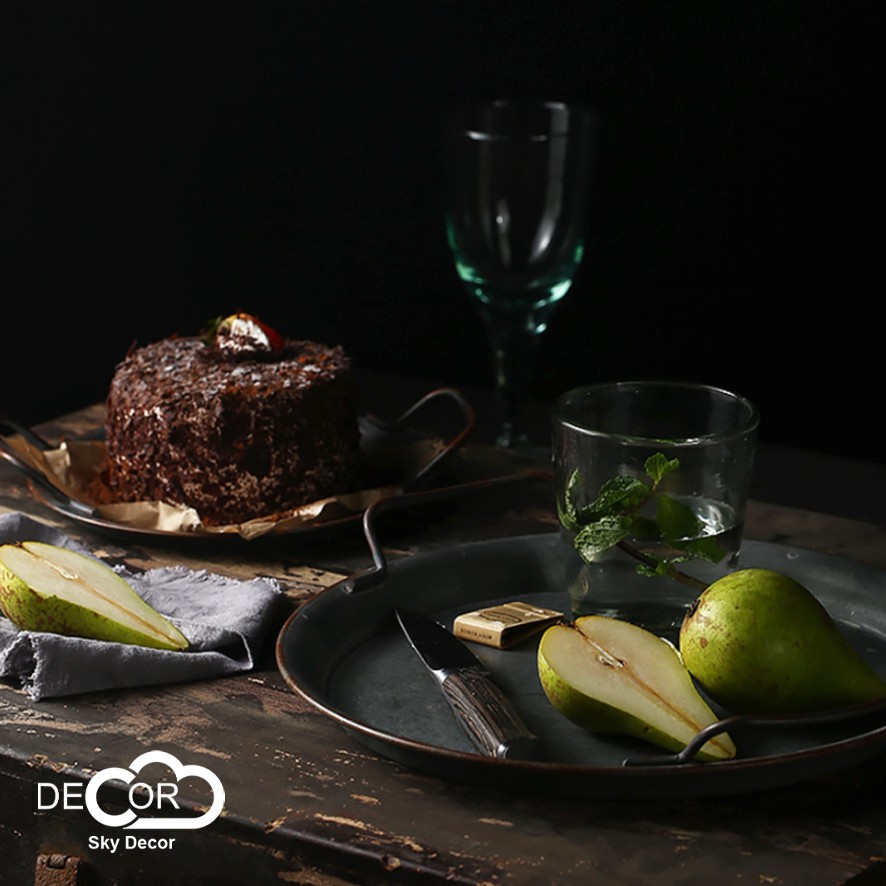 Khay rỉ tròn vintage trang trí chụp ảnh, decor nhà cửa, cửa hàng
