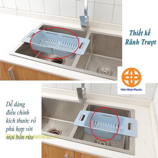 Khay, rổ gác bồn rửa chén bát Việt Nhật (5613) thông minh gấp gọn, điều chỉnh kích thước gài tiện lợi- Rổ gác bồn rửa chén bát nhựa Việt Nhật sở hữu thiết hình chữ nhật kế tiện dụng, thông minh có rãnh trượt để điều chỉnh kích thước phù hợp với mọi kiểu bồn rửa.