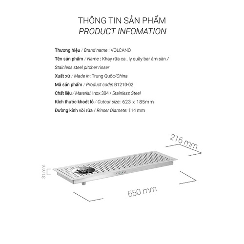 Tên sản phẩm: Khay rửa ca , ly quầy bar khuyên khối âm sàn inox 304 ( 652 x 218mm ) Vesion 2- Công ty chịu trách nhiệm về hàng hóa: CÔNG TY TNHH CÀ PHÊ VOLCANO
