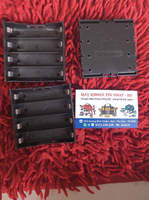Đế 4 cell Li-ion 18650, có thể lắp 1, 2, 3, 4 cell pin Li-ion 18650, nối tiếp hoặc song song, giúp việc sạc pin bằng nguồn DC ngoài hoặc iMax B6 dễ dàng. Có chân nối sạc phía sau hộp- Được làm bằng nhựa dày, cứng và bền