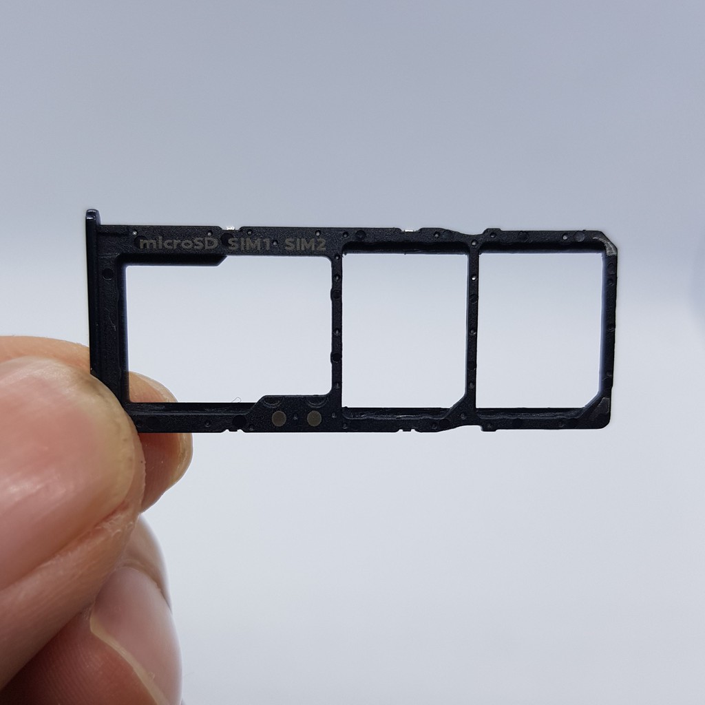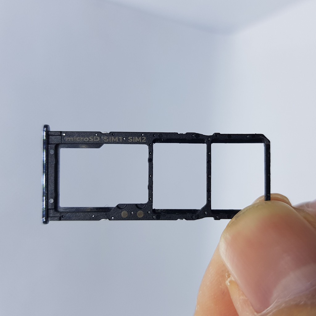 - Khay gồm khay sim 1, khay sim 2 và khay thẻ nhớ, có thể sử dụng đồng thời 2 sim và 1 thẻ nhớ.