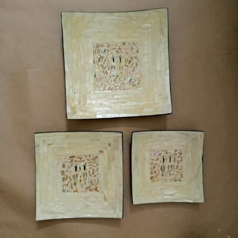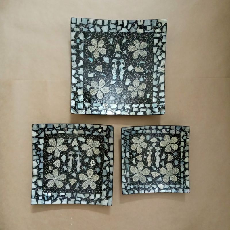 Khay sơn mài hình vuông thiết kế vát góc cong dùng để bày trang trí hoặc khay đựng trái cây, bánh kẹo...Chất liệu: khay gỗ sơn mài.