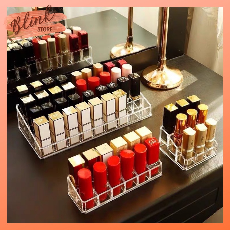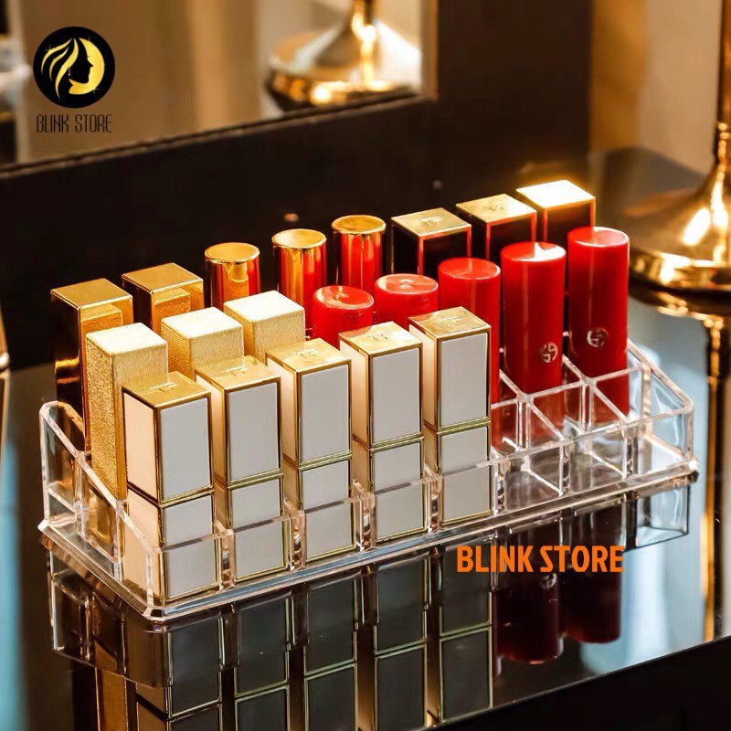 Khay đựng son 9,12,24,36 ô chất liệu mica trong suốt, kệ son loại dày cao cấp - Blink Store