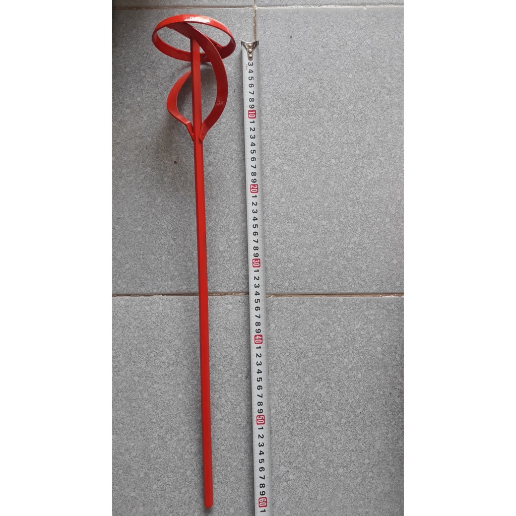 - Đầu của cần khuấy được làm thanh nhỏ người thợ có thể lắp vào máy khoan để thao tác nhanh và đều hơn.