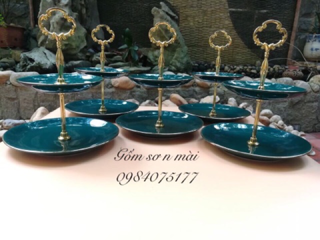 Sản phẩm : khay bánh kẹo, hoa quả .... decor trang tríChất liệu : sứ tráng men xanh cổ vịt, viền vàng kim