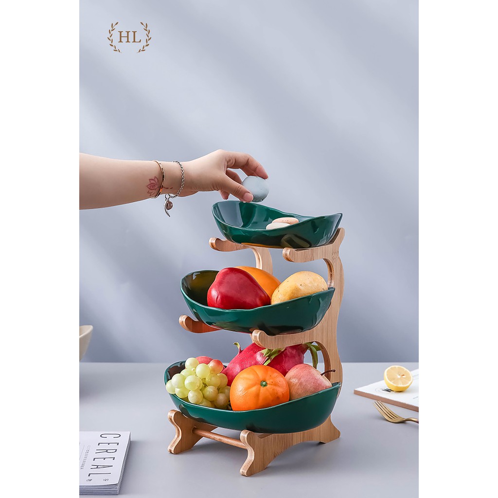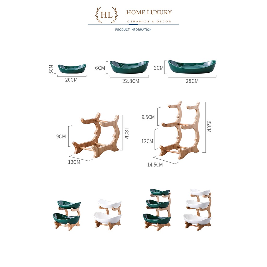 Nhà cửa & Đời sống > Bộ đồ bàn ăn > Dĩa || Khay sứ 3 tầng kèm kệ gỗ phong cách Bắc Âu | Kệ gỗ 3 tầng khay sứ Home Decor | KỆ SỨ 3 TẦNG GỖ TRE CAO CẤPCòn hàng