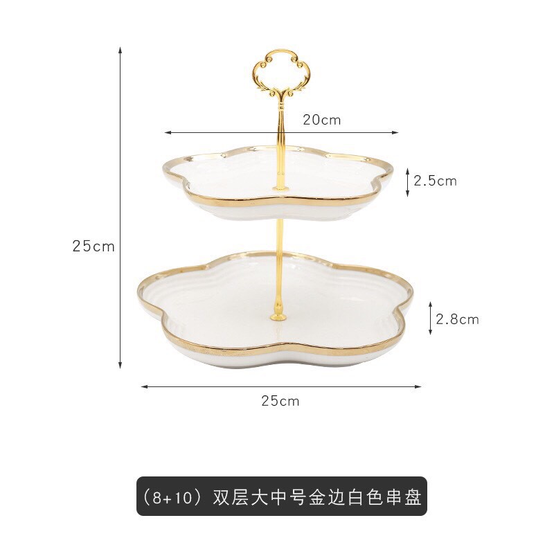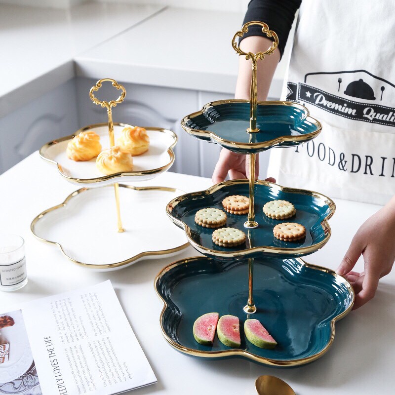 Khay sứ 3 tầng, 2 tầng là đồ gia dụng - trang trí nội thất đa năng có thể tháo lắp dễ dàng cho việc cất giữ bảo quản hay vận chuyển. Bạn có thể đựng các loại bánh cupcake hay hoa quả cho các bữa tiệc đặc biệt của gia đình.Với kiểu dáng hiện đại, thanh lịch hoa văn tinh tế khay sứ sẽ làm cho bàn tiệc gia đình sang trọng và lung linh hơn bao giờ hết. Đây là món đồ gia dụng cao cấp thích hợp làm món quà ý nghĩa trong dịp tân gia hay đầu năm mới.