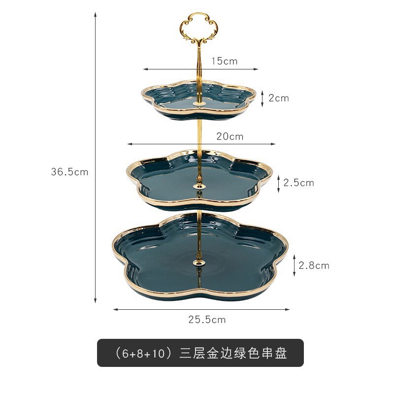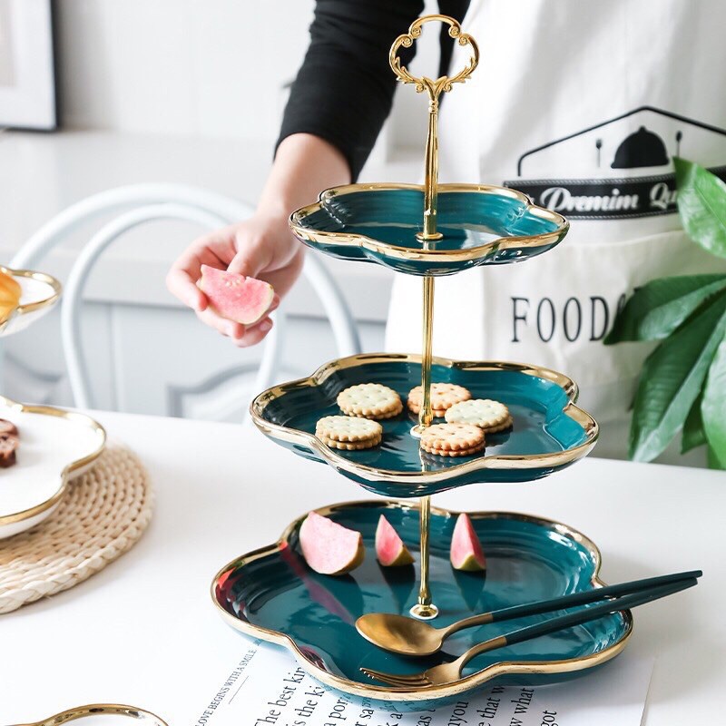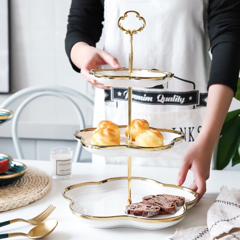 Nhà cửa & Đời sống > Bộ đồ bàn ăn > Dĩa || Khay sứ 3 tầng viền vàng sang trọngCòn hàng