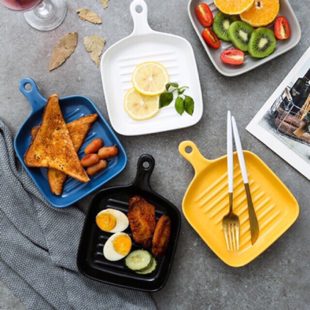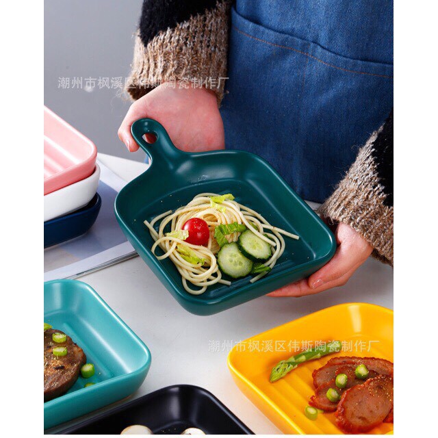 Nhà cửa & Đời sống > Bộ đồ bàn ăn > Dĩa || Khay sứ, chảo sứ vuông có tay cầm phong cách Bắc Âu dùng được cho lò nướngCòn hàng