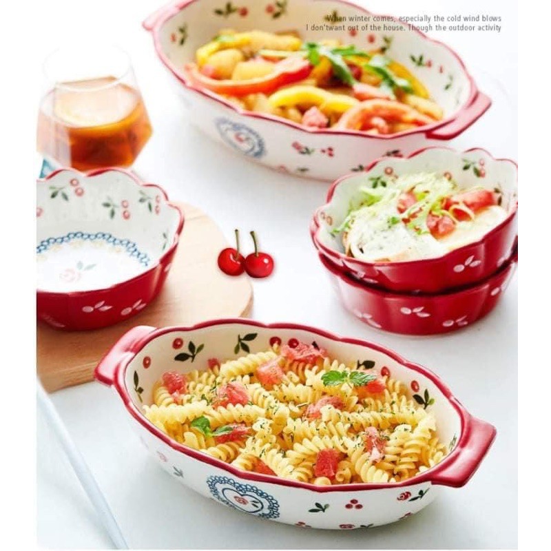 Nhà cửa & Đời sống > Bộ đồ bàn ăn > Dĩa || Khay sứ Cherry, thố decor bàn ăn dáng ovanCòn hàng