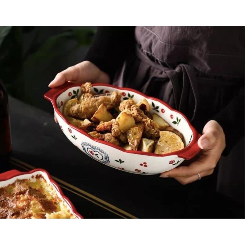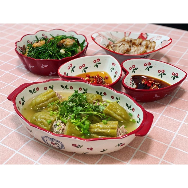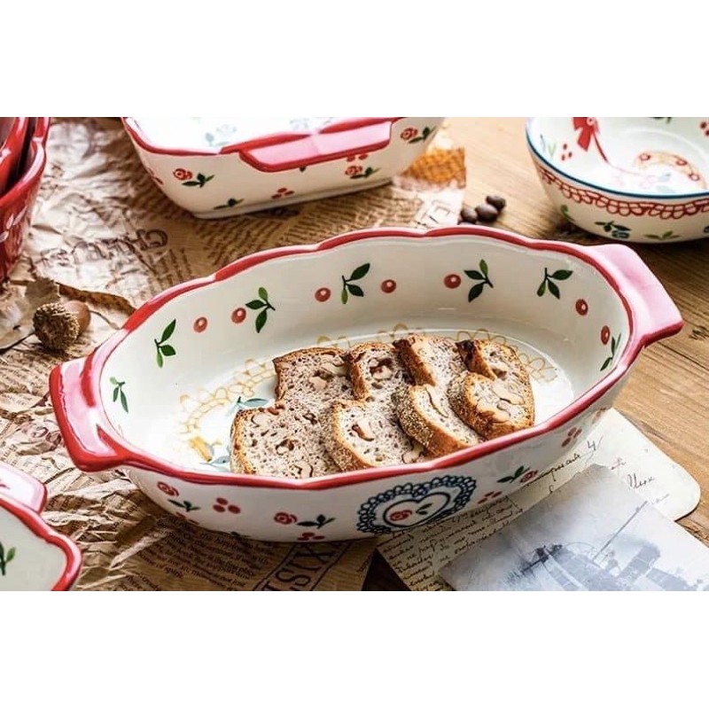 Nhà cửa & Đời sống > Bộ đồ bàn ăn > Dĩa || Khay sứ Cherry, thố decor bàn ăn dáng ovan kiểu Bắc ÂuCòn hàng