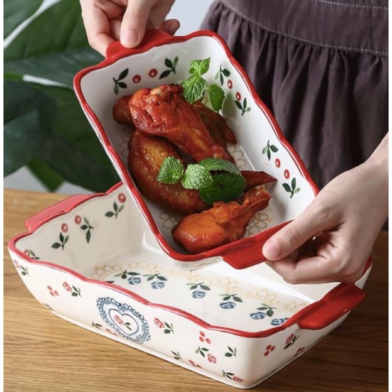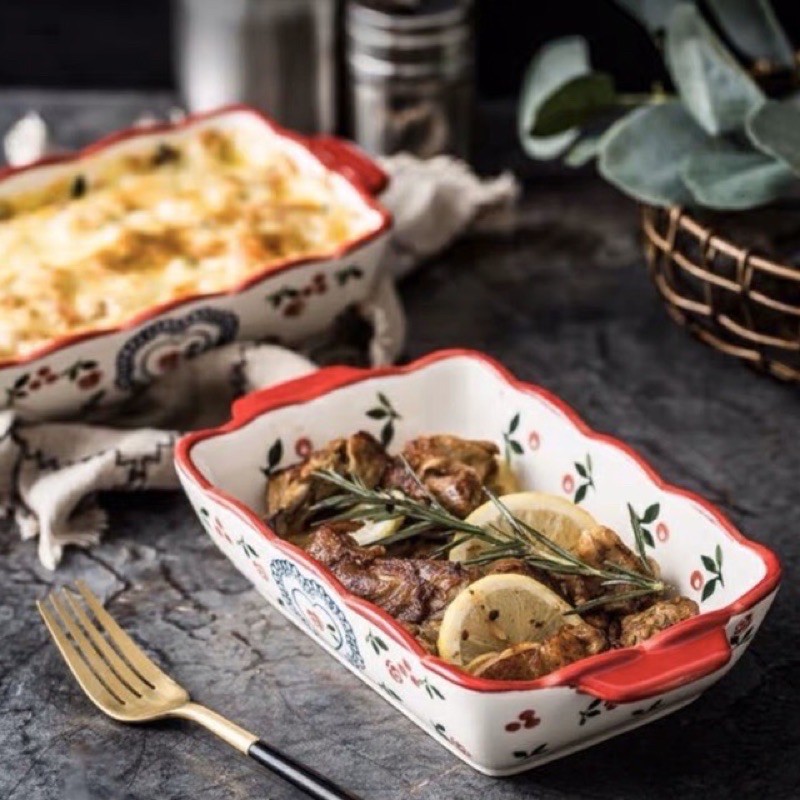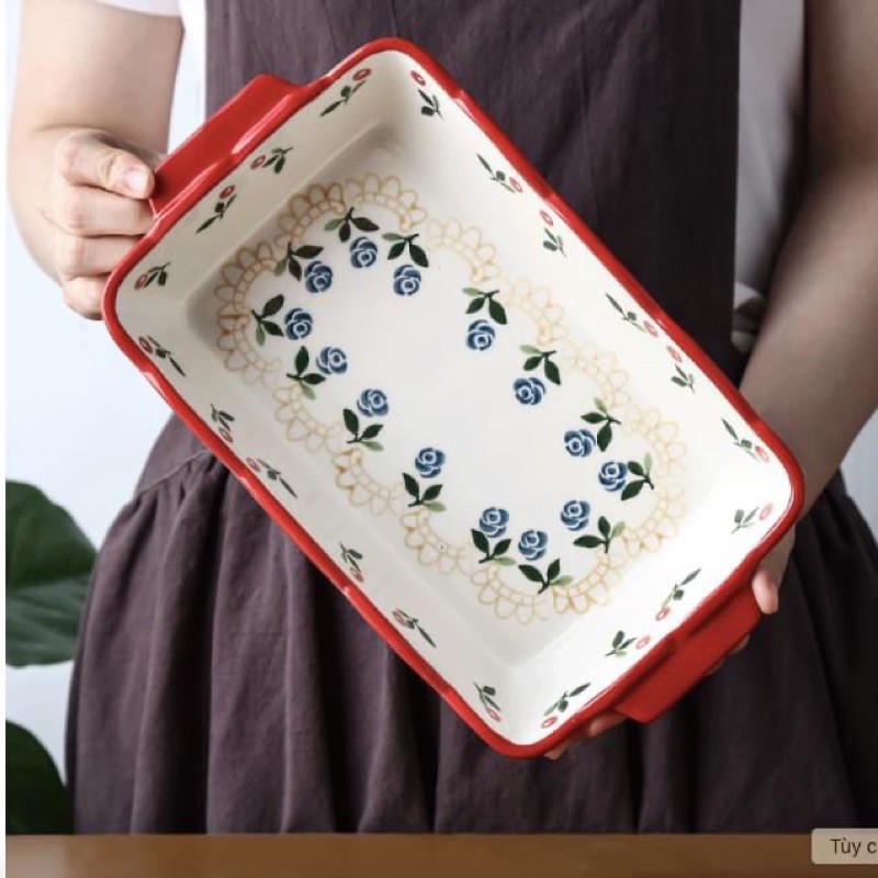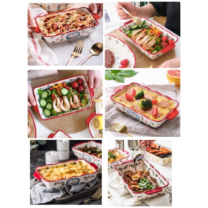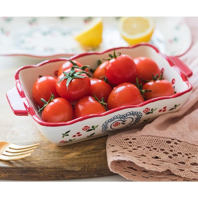 Khay sứ, thố sứ dáng chữ nhật hoạ tiết Cherry hoa hồng đình đám siêu đáng yêu phong cách Bắc Âu hiện đại, sang chảnh, đẹp mắt, với hoạ tiết được vẽ thủ công bằng tay, các bạn yêu bếp, thích nấu ăn và chụp ảnh đồ ăn ko thể bỏ qua các mẫu bát đĩa nhà e đâu ạ 🍃Kích thước: (theo ảnh)