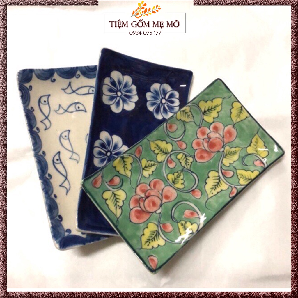 Khay sứ đĩa sứ hình chữ nhật size 14x8 (nhiều mẫu)
