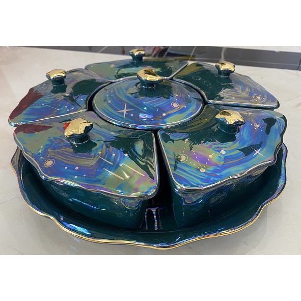 Bộ khay sứ đựng bánh mứt kẹo cao cấp ngôi sao xanh, trắng, thích hợp dùng trong ngày lễ tết, các buổi tiệc