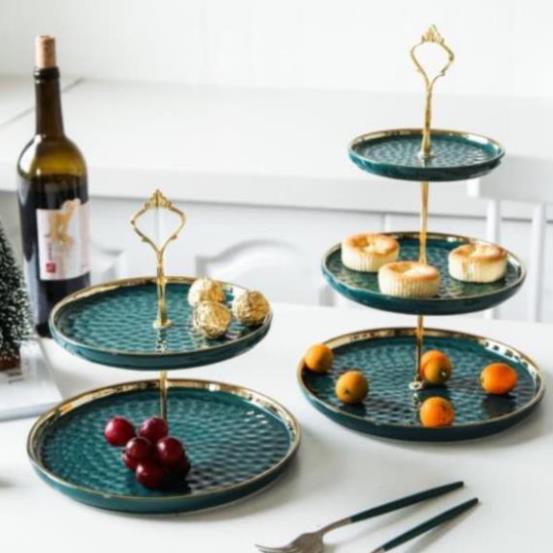 Nhà cửa & Đời sống > Bộ đồ bàn ăn > Dĩa || Khay sứ đựng bánh mứt kẹo trái cây 2 tầng/ 3 tầng nạm vàng màu trắng và xanh cổ vịt sang trọngCòn hàng