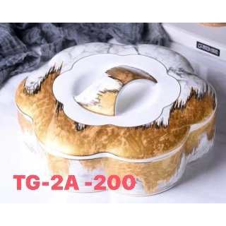Giới thiệu Bộ khay sứ đựng bánh mứt kẹo vân đá trắng mạ vàng cao cấp - mã 200, thích hợp dùng trong ngày lễ tết, các buổi tiệc