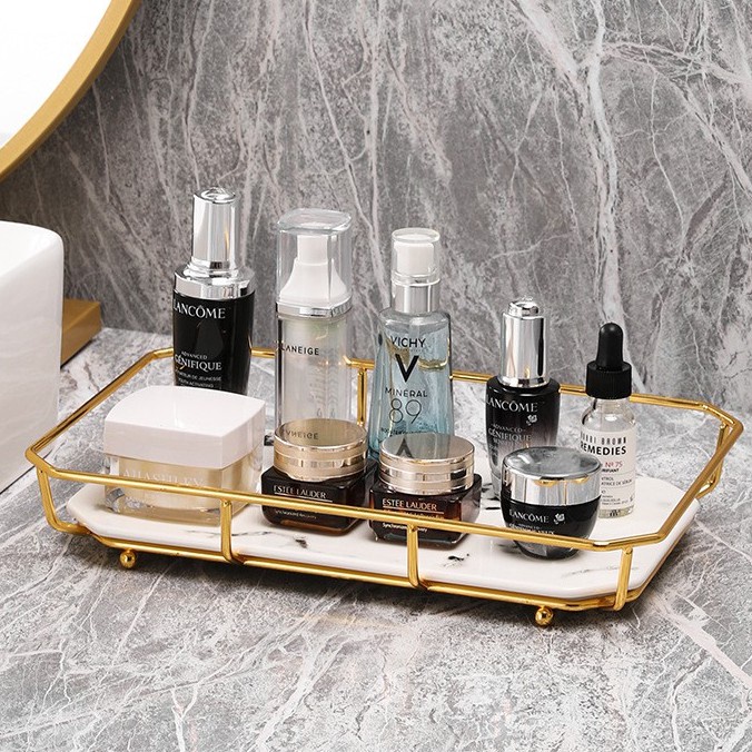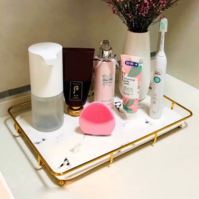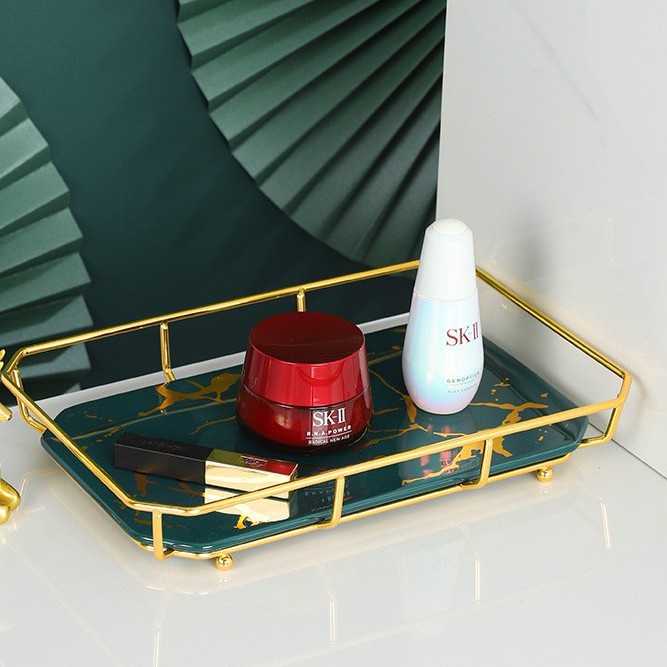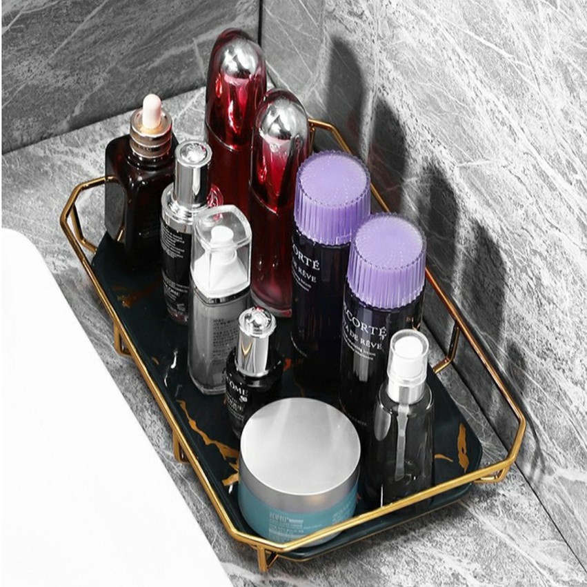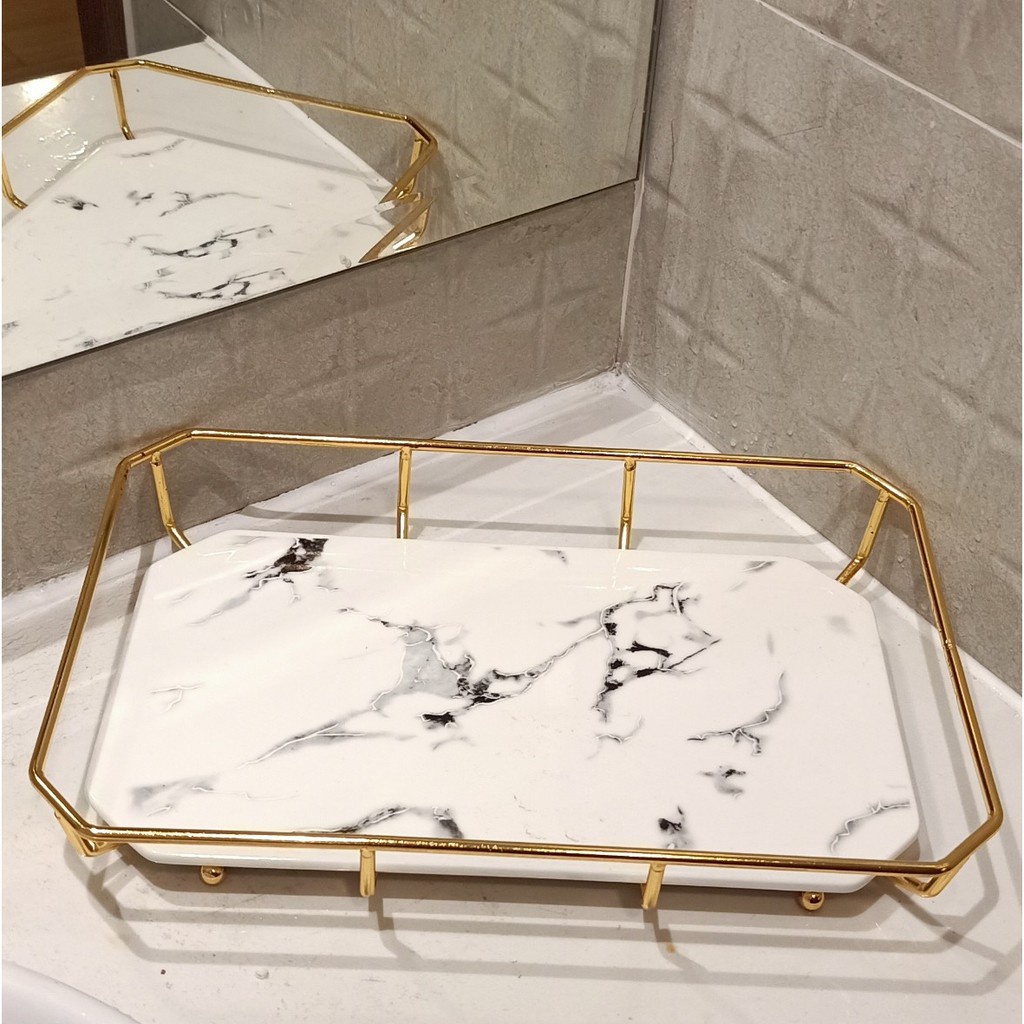 Khay Sứ Đựng Mỹ Phẩm Decor Nhà Tắm Khách Sạn Spa Sang Trọng, Kệ Để Đồ Phòng Tắm Hình Chữ Nhật Khung Thép Không Gỉ