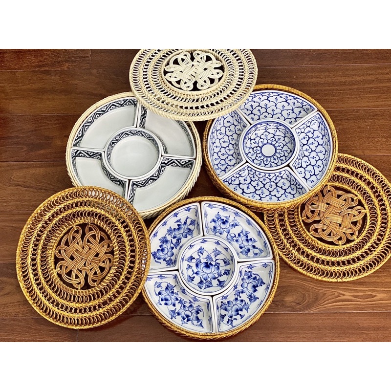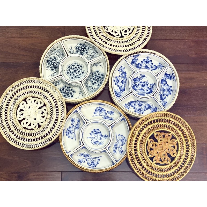 Nhà cửa & Đời sống > Bộ đồ bàn ăn > Tô || Khay sứ đựng thức ăn cơm phần Bánh kẹo Tết Set khay mây sứ hoạ tiết gốm Bát tràng vẽ tayCòn hàng