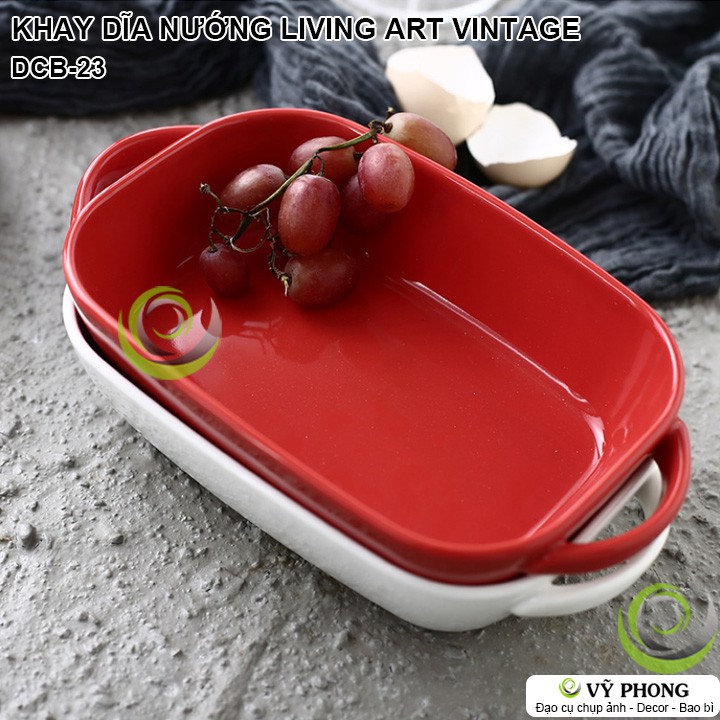 KHAY SỨ NƯỚNG DĨA SỨ NƯỚNG LIVING ART VINTAGE BẮC ÂU TRANG TRÍ BẾP ĐẠO CỤ CHỤP HÌNH SẢN PHẨM INS DCB-23