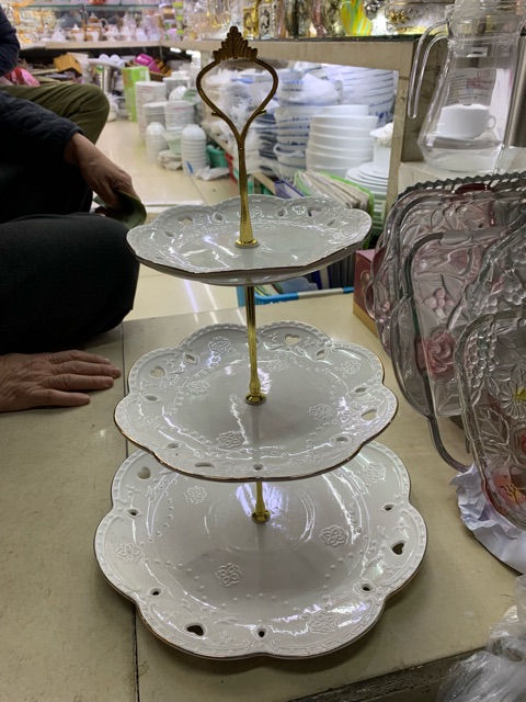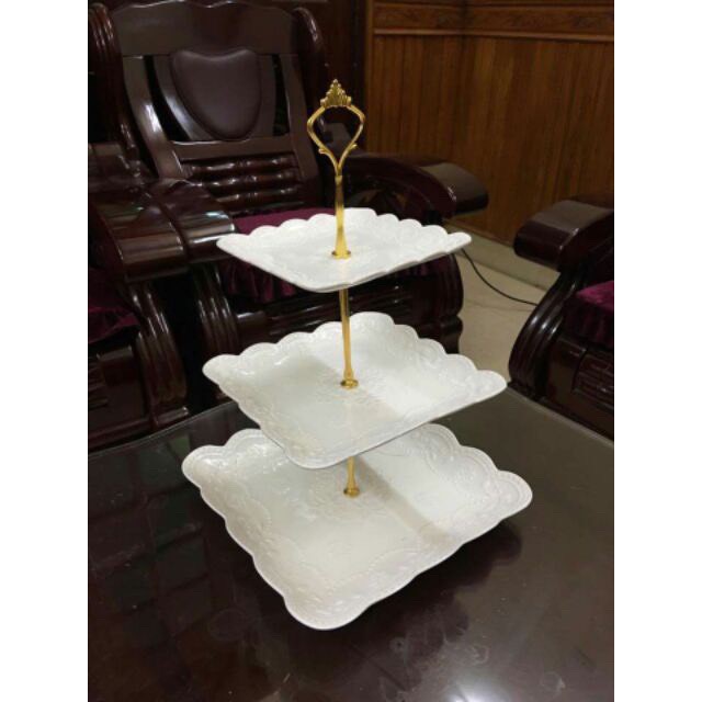 Nhà cửa & Đời sống > Dụng cụ nhà bếp > Dụng cụ nướng & trang trí bánh || Khay sứ trắng 3 tầng đựng bánh kẹo hoa quả (tròn/ vuông)Còn hàng