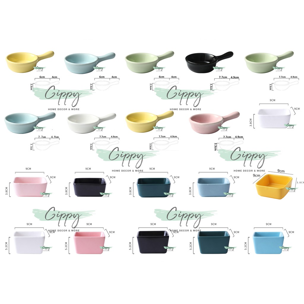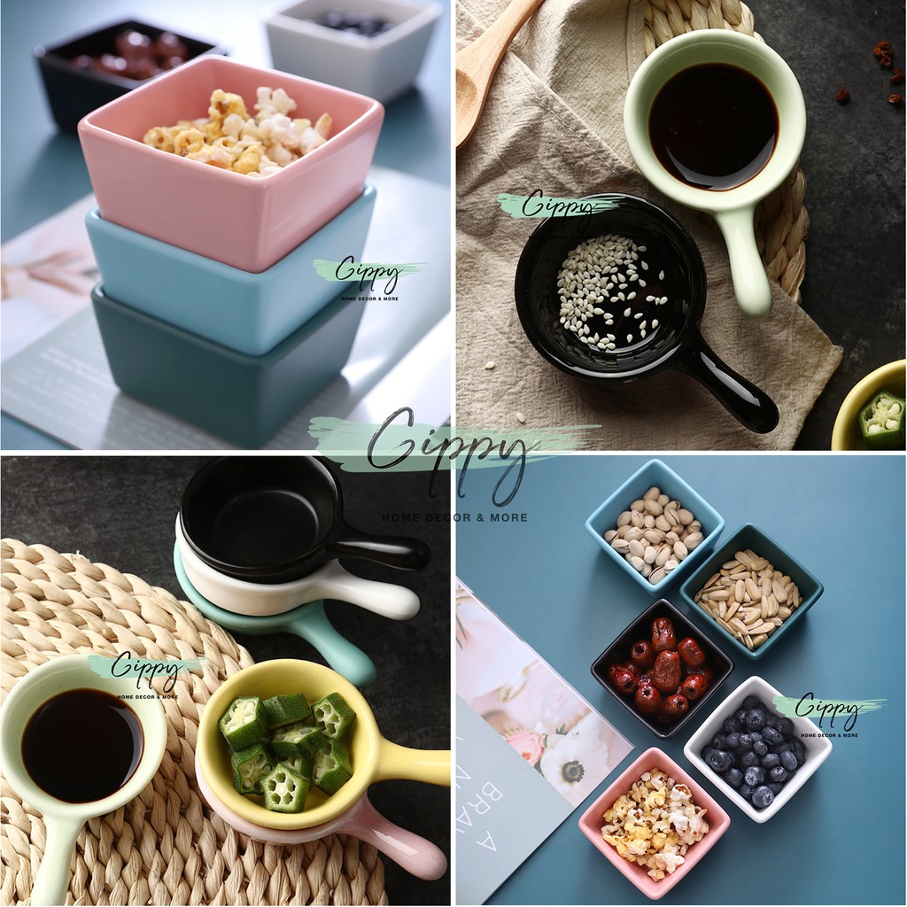 Nhà cửa & Đời sống > Bộ đồ bàn ăn > Tô || Khay sứ trơn vuông, tròn có tay cầm đựng gia vị/ đồ ăn kèm - Gippy DecorCòn hàng