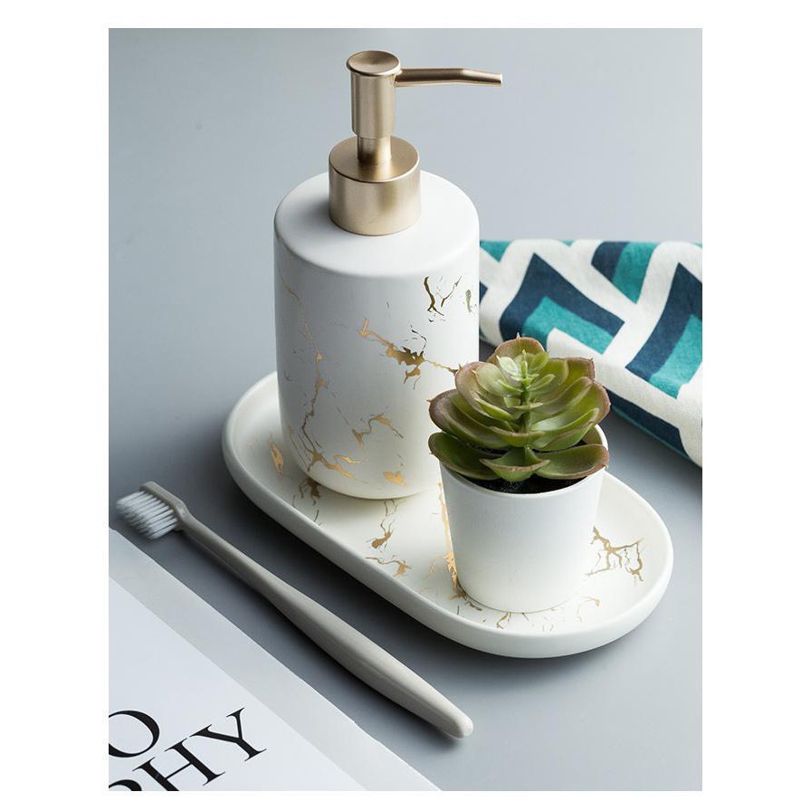 Khay Sứ Vân Đá Đựng Đồ Nhà Tắm Đa Năng Ly Đánh Răng Nến Thơm, Dĩa Để Ly Uống Trà Cà Phê Decor Bàn Tiệc Sang Trọng