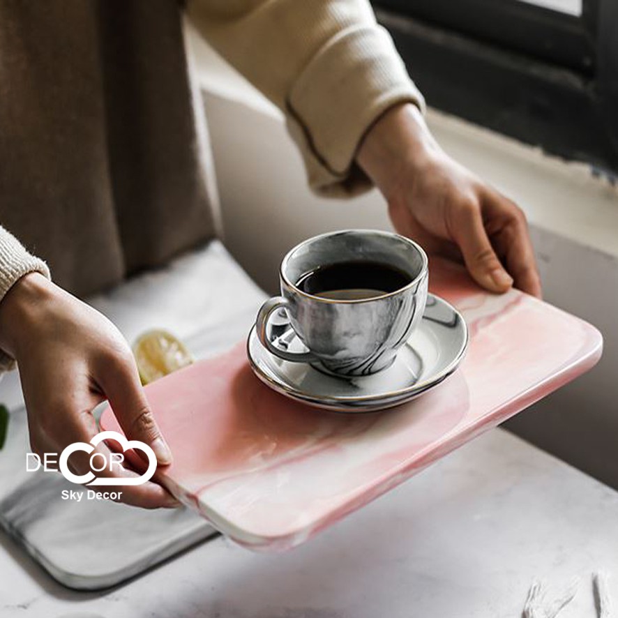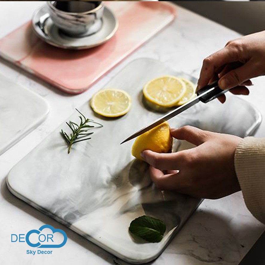 Nhà cửa & Đời sống > Bộ đồ bàn ăn > Khay, tấm lót bàn ăn || Khay sứ vân đá ☀️FREESHIP☀️ chữ nhật, đựng hoa quả, thức ăn - Sky decorCòn hàng