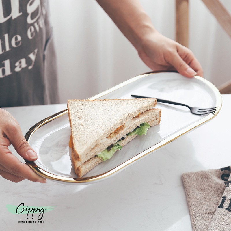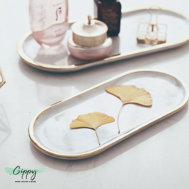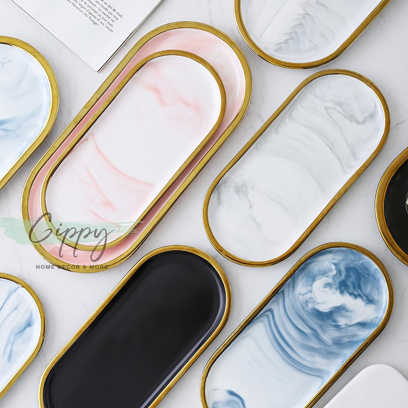 Nhà cửa & Đời sống > Trang trí nhà cửa > Khác || Khay sứ vân đá oval để bàn vân marble viền màu gold - Phụ kiện trang trí - Gippy DecorCòn hàng