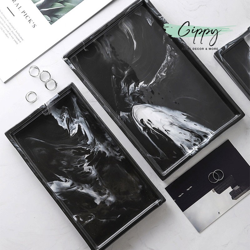 Giới thiệu Khay sứ vân đá vân marble đen sang trọng - Home Decor - Gippy Decor