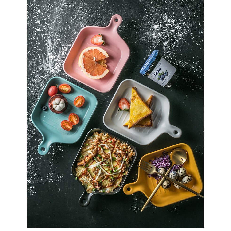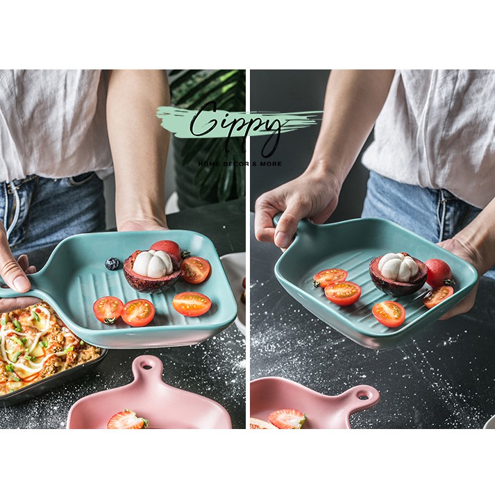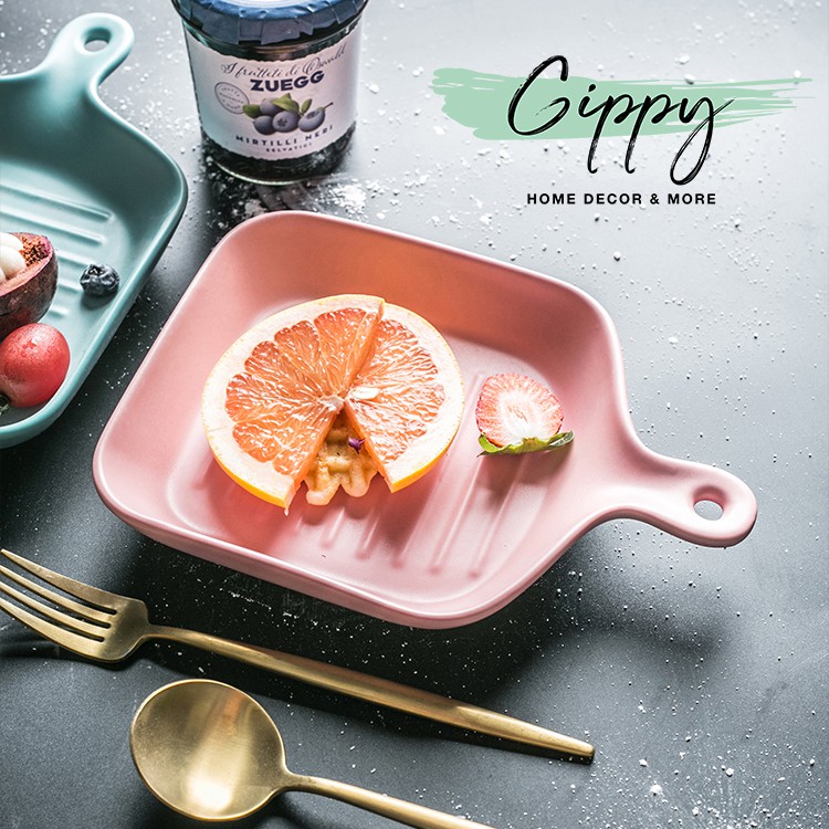 Nhà cửa & Đời sống > Bộ đồ bàn ăn > Dĩa || Khay sứ vuông, khay sứ tròn màu trơn có tay cầm - Gippy DecorCòn hàng