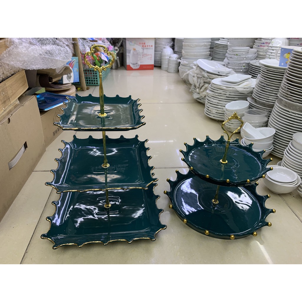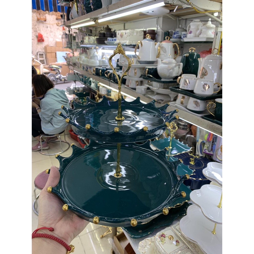 Nhà cửa & Đời sống > Bộ đồ bàn ăn > Dĩa || Khay sứ xạnh tròn vương miện 2 tầngCòn hàng