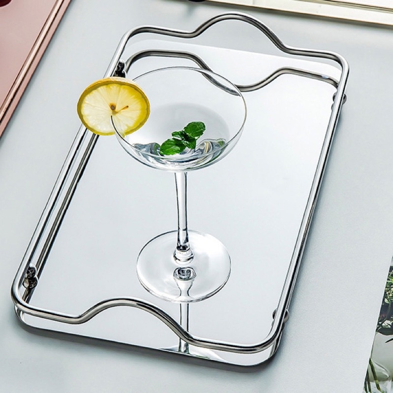 Nhà cửa & Đời sống > Trang trí nhà cửa > Gương || Khay Thép Tráng Gương Trắng bạch kim, khay decor kim loại đựng Mỹ phẩm trang sứcCòn hàng