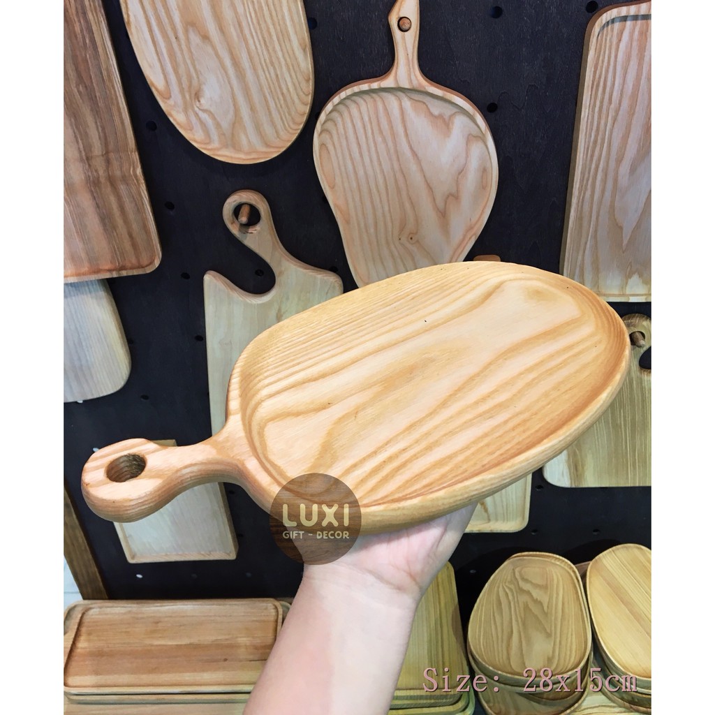 Giới thiệu Khay - Thớt gỗ lệch có tay cầm decor 28 (KT: 28x15cm)